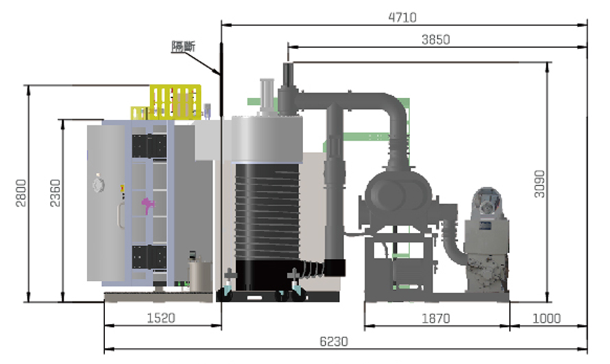 唯力特真空VLT-1600B型雙機組鍍膜機側視圖 |